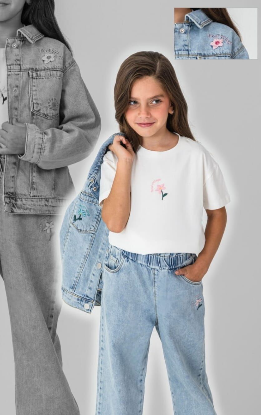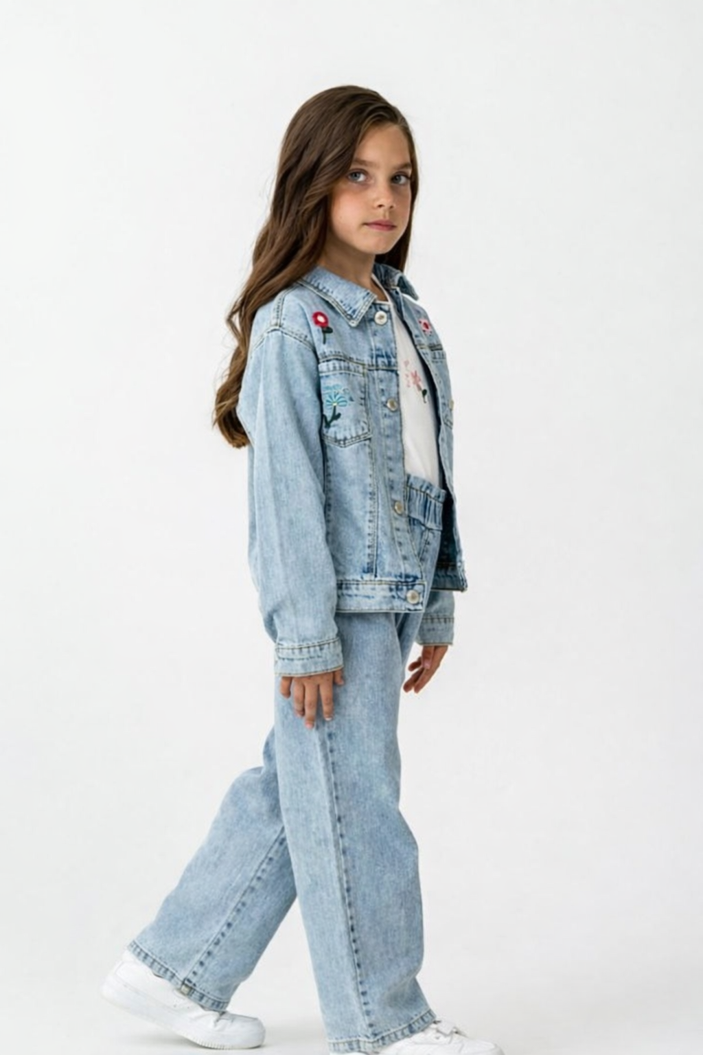 8 ay - 6 yaş kız çocukları için tasarlanan 3’lü kot takım, modern ve rahat yapısıyla öne çıkar. Nakış detaylı denim ceket, yumuşak tişört ve kot pantolondan oluşur. Açık mavi tonlarıyla şık bir görünüm sunar. Günlük kullanım için ideal olan bu takım, çocukların gün boyu rahat ve özgürce hareket etmesini sağlar.