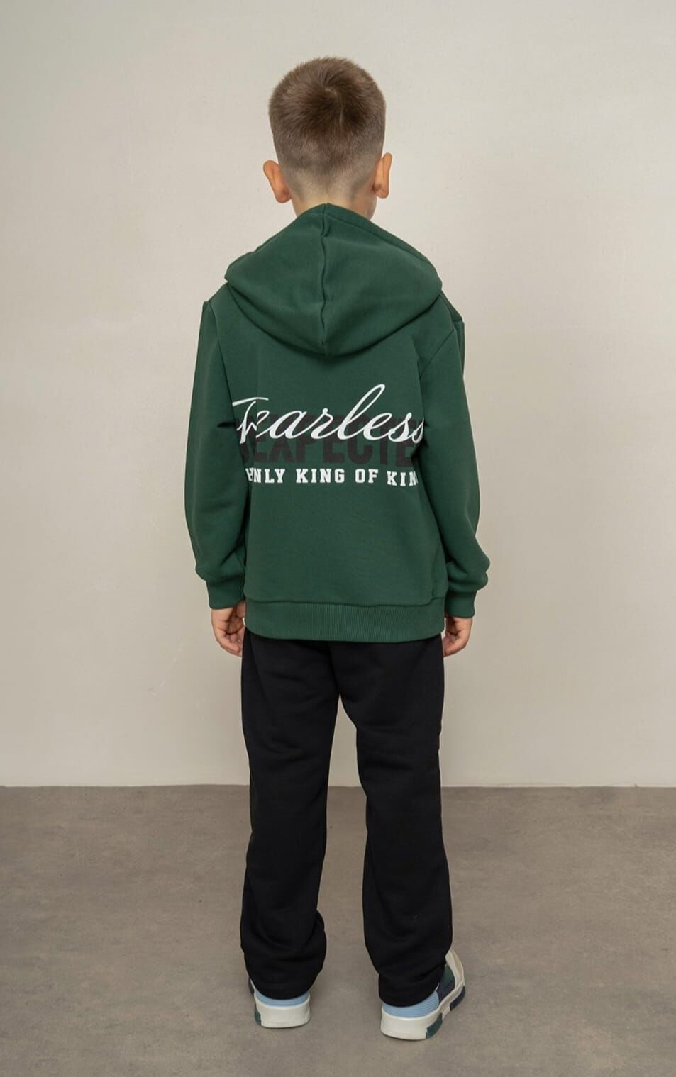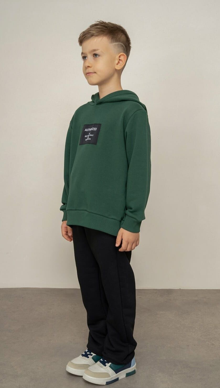 2-14 yaş erkek çocuk yeşil kapüşonlu sweatshirt ve siyah eşofman takımı, konfor ve şıklığı bir arada sunar. Nefes alabilen kumaşı sayesinde özellikle bahar aylarında rahat kullanım sağlar. Minimal baskı detayı ile sade bir görünüm sunar. Okulda, parkta ve günlük kombinlerde rahatlıkla tercih edilebilecek, konforlu ve kullanışlı bir takımdır.