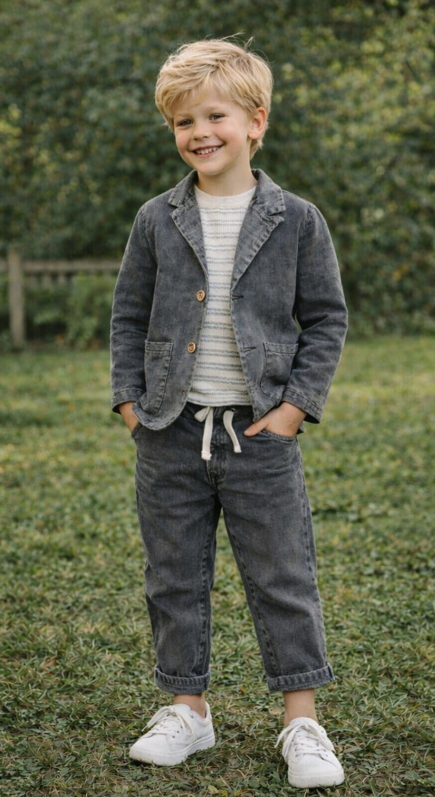 2-14 yaş erkek çocukları için tasarlanan lacivert ceketli takım, şık ve modern görünümüyle öne çıkar. Yumuşak kumaşı ve rahat kesimi sayesinde gün boyu konfor sağlar. Ceket ve pantolon uyumuyla stil sahibi bir görünüm sunar. Günlük kullanımın yanı sıra doğum günü, davet ve özel günler için ideal bir seçenektir.