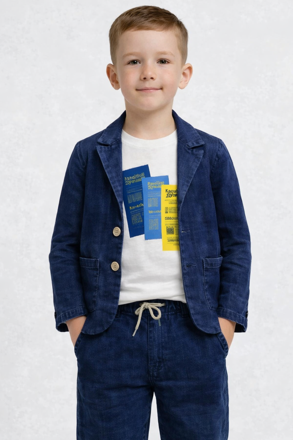 2-14 Yaş Erkek Çocuk Lacivert Ceket Pantolon Tişört Takım