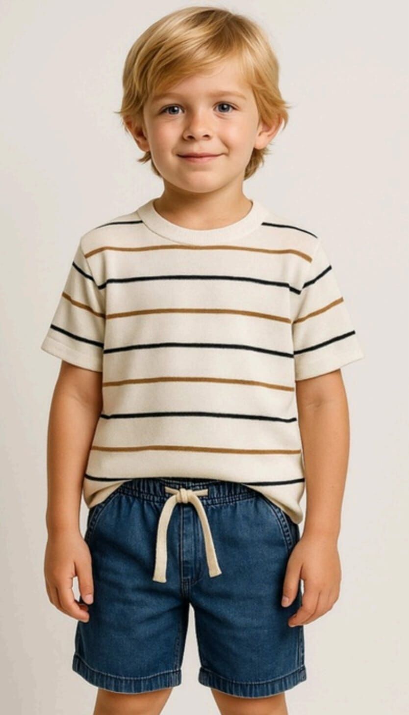2-14 yaş erkek çocukları için tasarlanan çizgili triko tişört, şık ve rahat yapısıyla öne çıkar. Yumuşak dokulu ve nefes alabilen kumaşı sayesinde gün boyu konfor sağlar. Modern çizgili tasarımıyla zamansız bir görünüm sunar. Jean, şort ve eşofmanlarla kolayca kombinlenebilen bu model, günlük kullanım ve aktiviteler için idealdir.