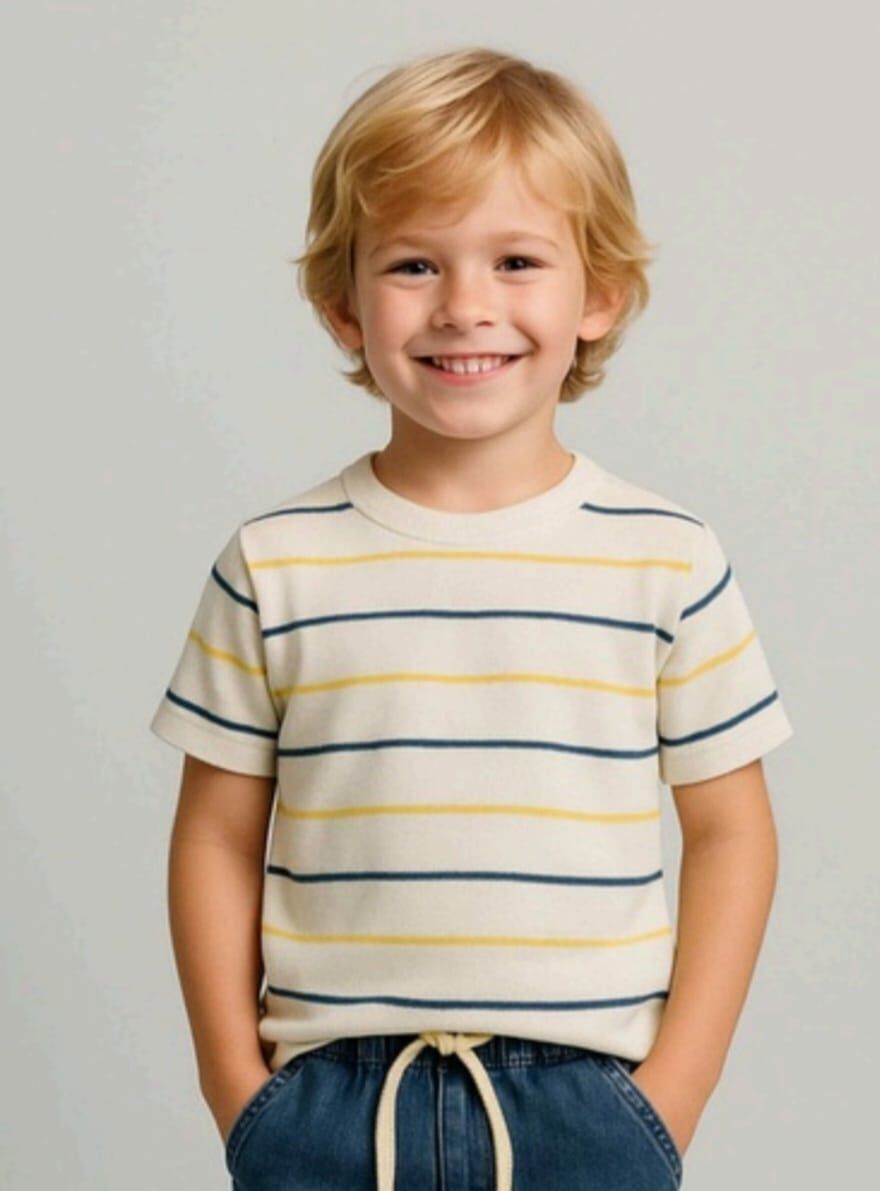 2-14 yaş erkek çocukları için tasarlanan çizgili triko tişört, şık ve rahat yapısıyla öne çıkar. Yumuşak dokulu ve nefes alabilen kumaşı sayesinde gün boyu konfor sağlar. Modern çizgili tasarımıyla zamansız bir görünüm sunar. Jean, şort ve eşofmanlarla kolayca kombinlenebilen bu model, günlük kullanım ve aktiviteler için idealdir.