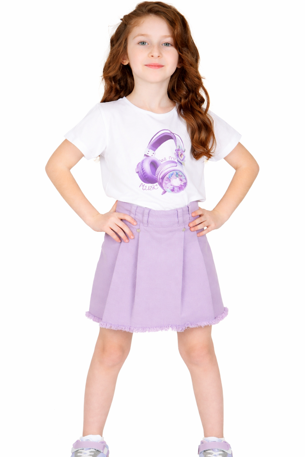 2-14 Yaş Kız Çocuk Lila Denim Ceket Şort Etek Takım