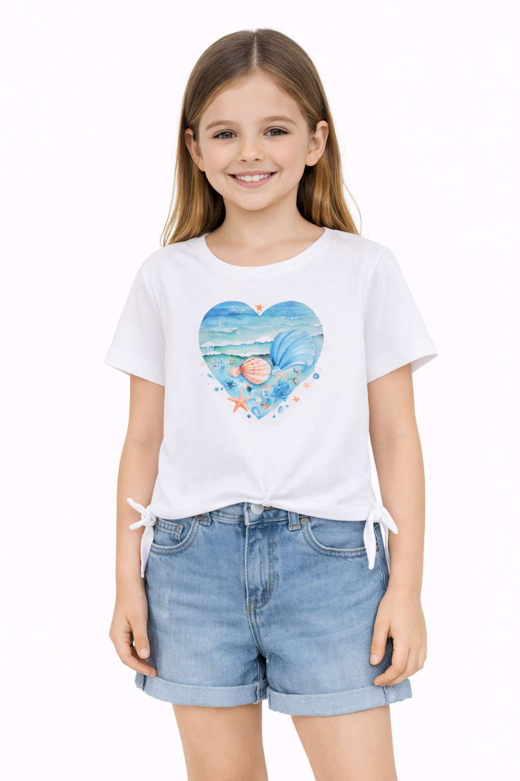 2-6 yaş deniz kabuğu ve kalp baskılı kız çocuk tişört, yazın enerjisini yansıtan sevimli tasarımıyla öne çıkar. Yumuşak ve rahat kumaşı sayesinde gün boyu konfor sunar. Şort, etek ve pantolonlarla kolayca kombinlenebilen bu model; günlük kullanım, tatil ve yaz aktiviteleri için ideal bir kız çocuk tişörtüdür.