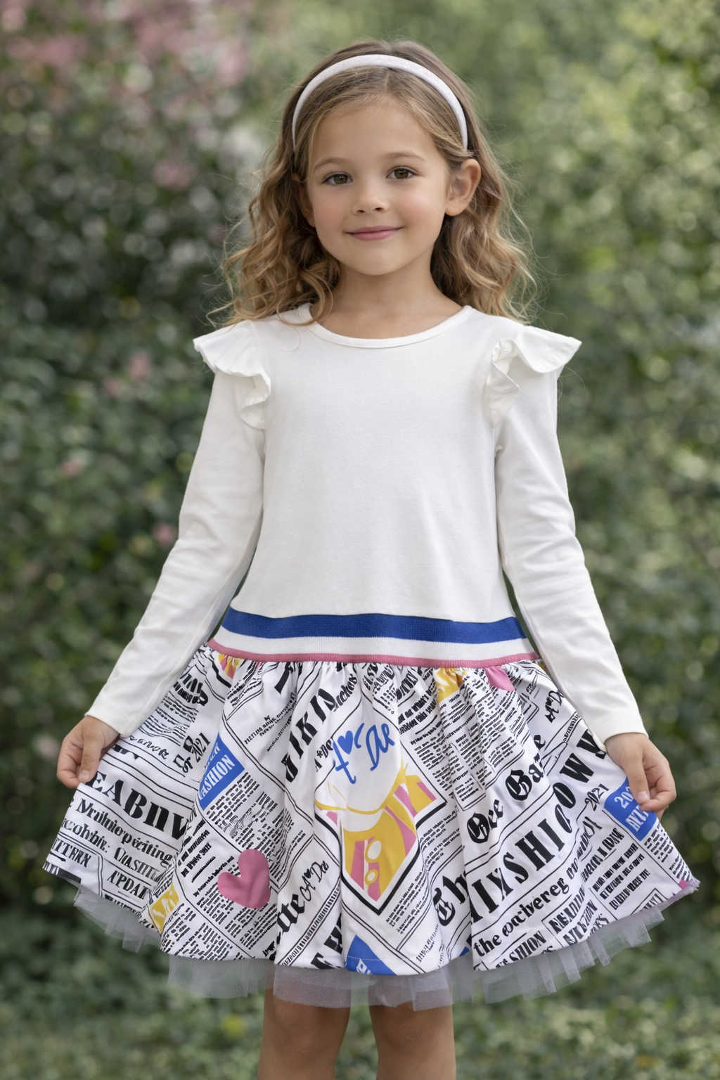 Kız çocuk fırfır detaylı elbise, modern ve rahat tasarımıyla öne çıkar. Omuzlardaki fırfır detayları ve desenli etek bölümü elbiseye hareketli bir görünüm kazandırır. Günlük kullanım, okul ve aktiviteler için uygun olan bu model, şık ve konforlu bir kullanım sunar.