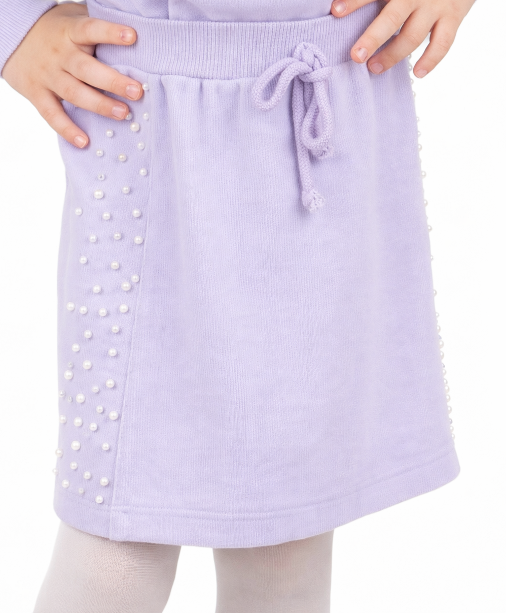 2-6 Yaş Kız Çocuk Lila Selanik Sweatshirt Etekli Takım