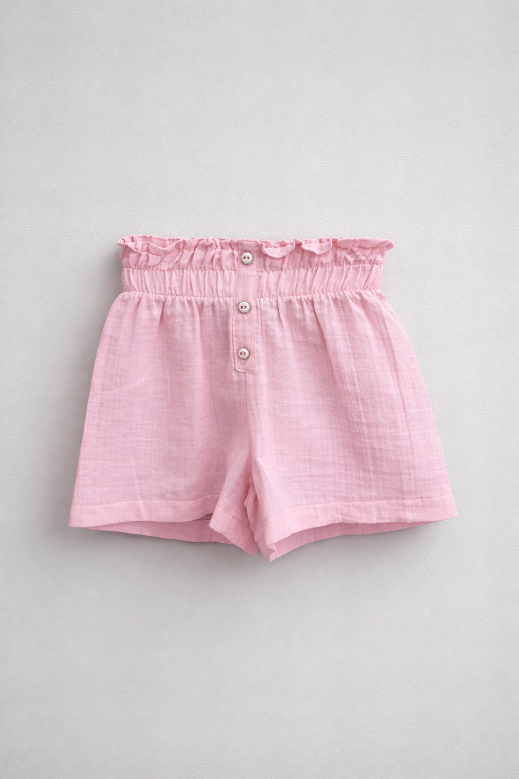 2-6 Yaş Kız Çocuk Pembe Müslin Şortlu Takım