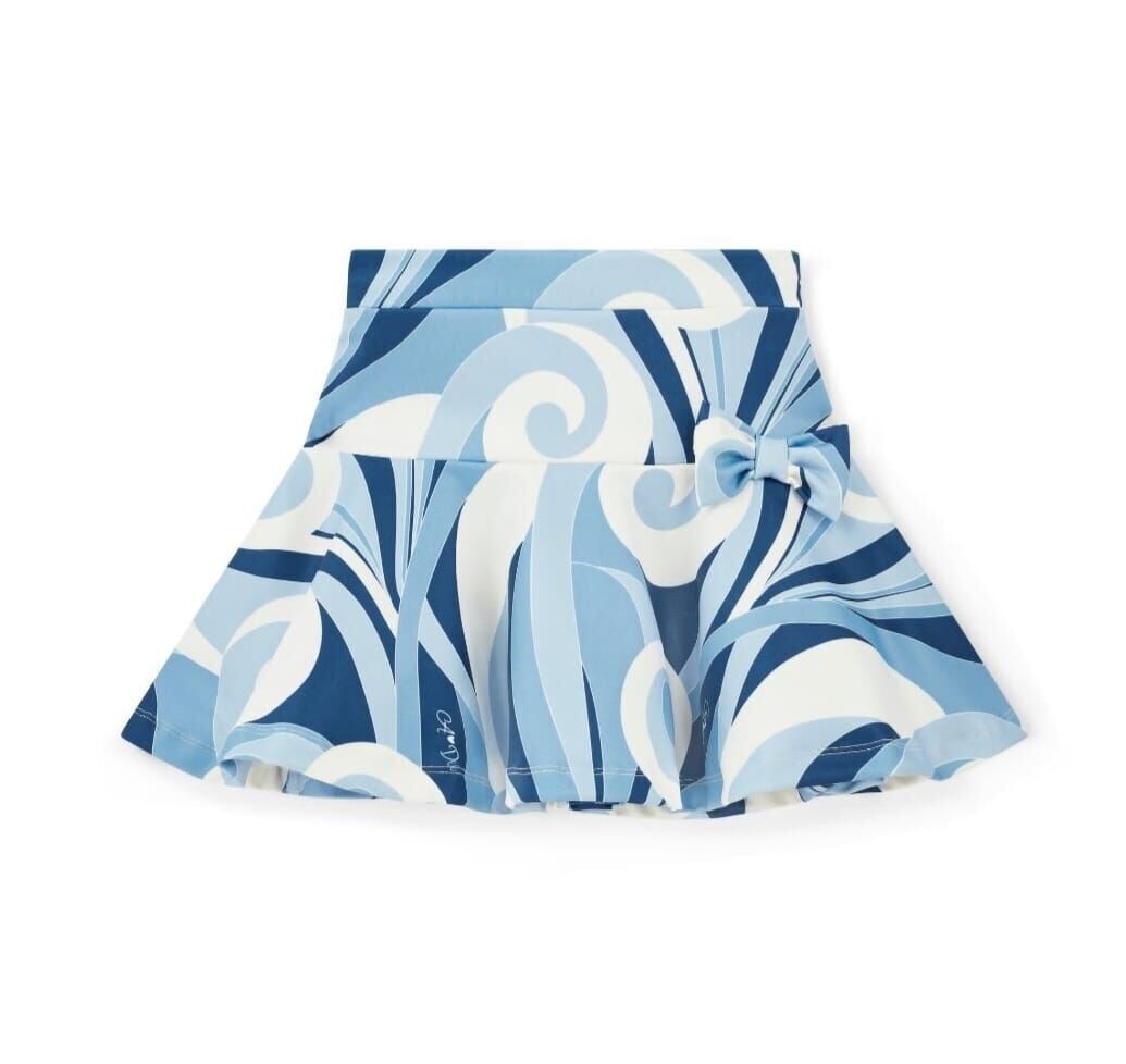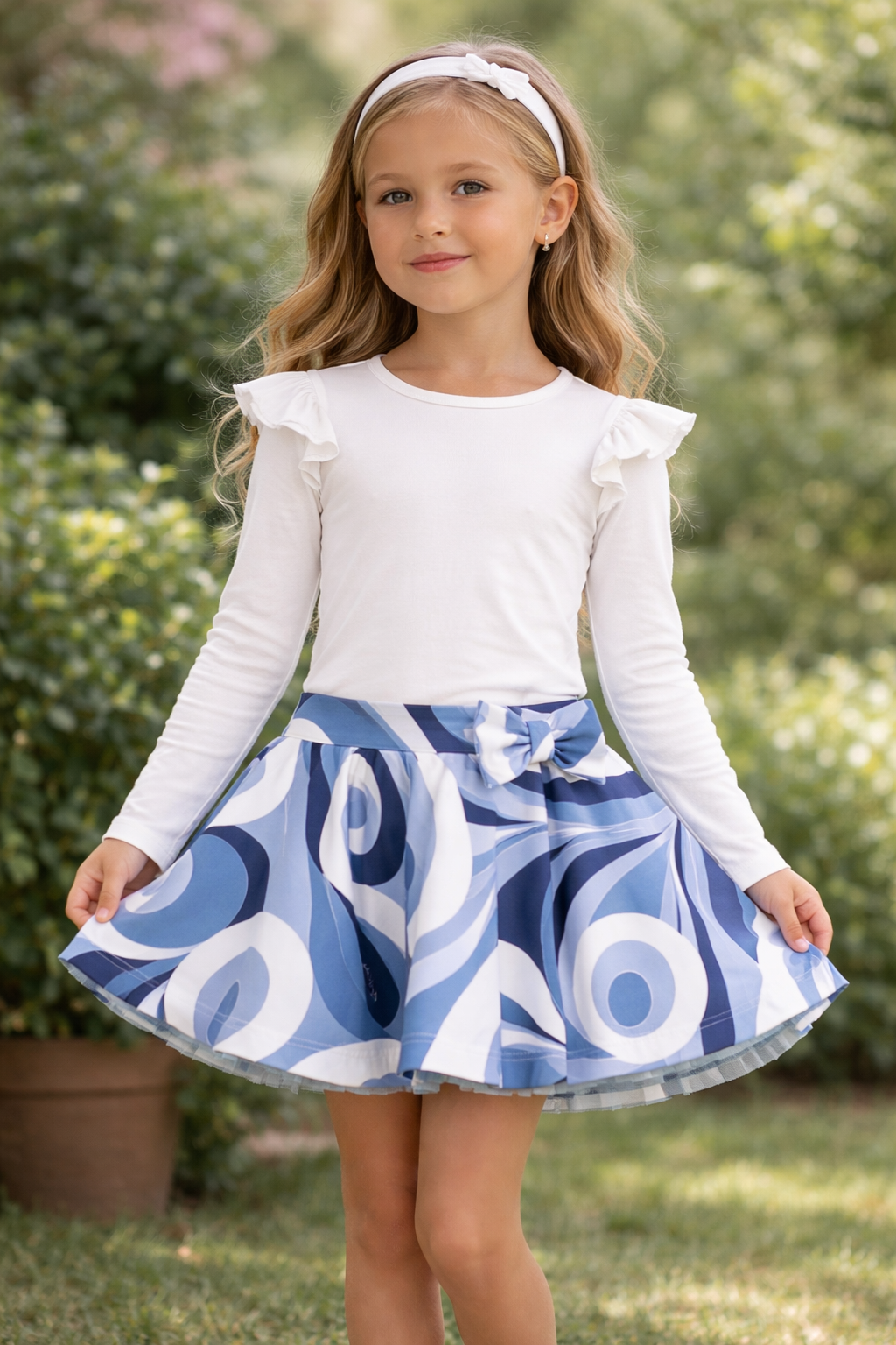 3-12 Yaş Kız Çocuk Mavi Desenli Fiyonklu Etek