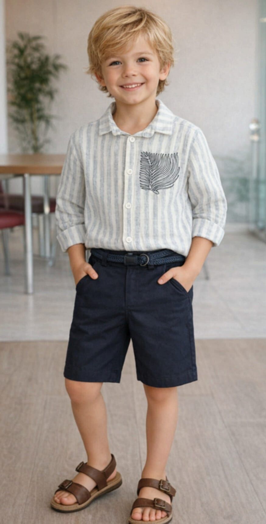 3-8 yaş erkek çocukları için tasarlanan gömlek ve şort takımı, şıklık ve rahatlığı bir arada sunar. Çizgili gömlek ve rahat kesim şorttan oluşan bu kombin, hafif yapısıyla yaz aylarında serin kullanım sağlar. Günlük kullanımın yanı sıra doğum günü, tatil ve davetlerde tercih edilebilecek şık ve konforlu bir seçenektir.