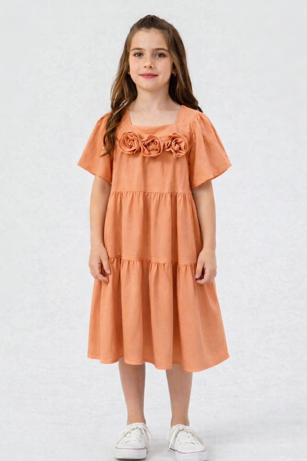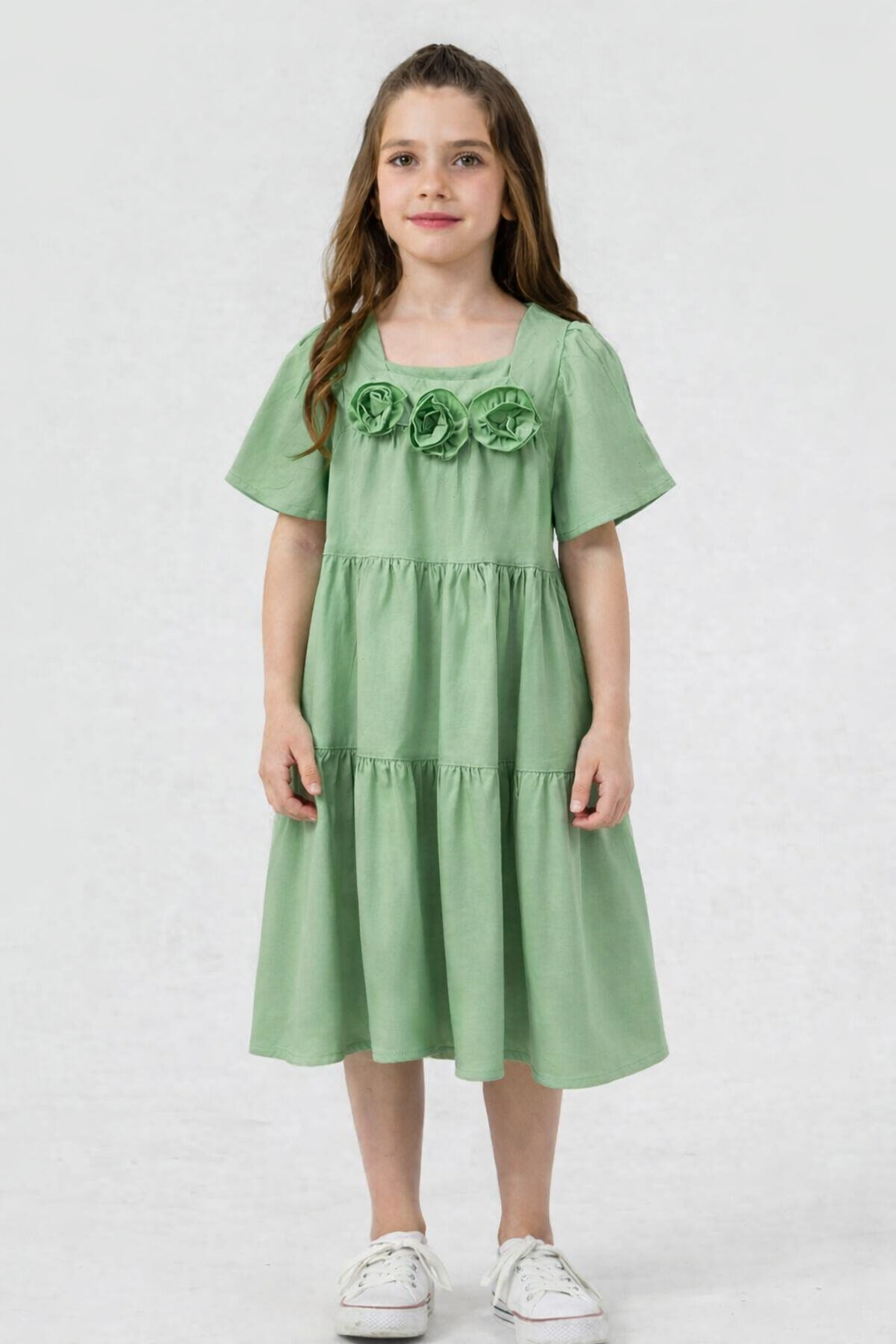 3-8 Yaş Kız Çocuk Çiçek Detaylı Yazlık Elbise