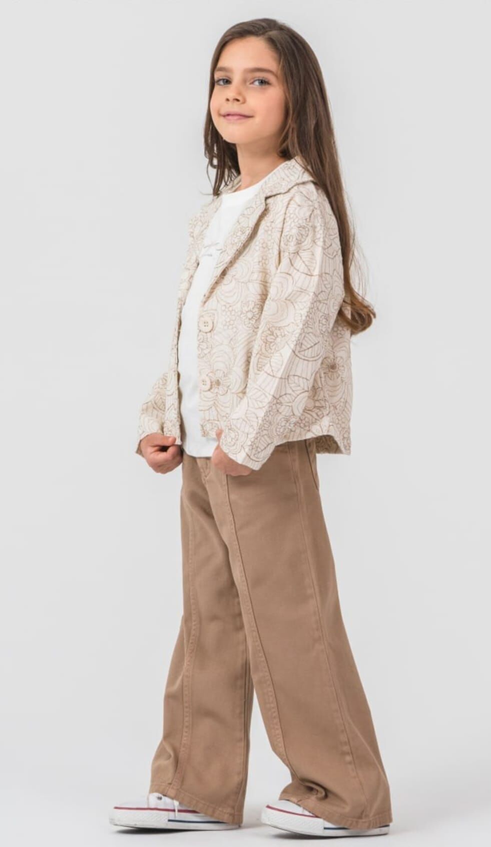 4-8 yaş kız çocukları için tasarlanan takım, şık ve modern görünümüyle öne çıkar. Desenli ceket, basic tişört ve rahat kesim pantolondan oluşan bu kombin, hem konfor hem stil sunar. Uyumlu renkleriyle dikkat çeken model, günlük kullanımın yanı sıra doğum günü, bayram ve özel günler için ideal bir tercihtir.