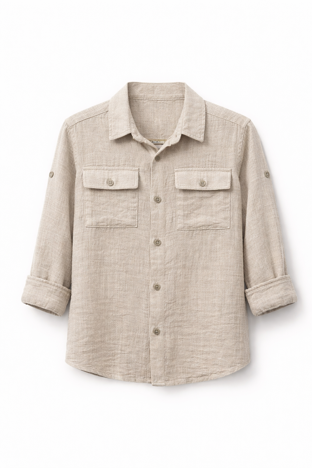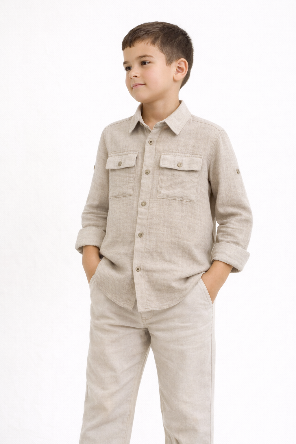 5-16 Yaş Erkek Çocuk Bej Keten Viskon Gömlek