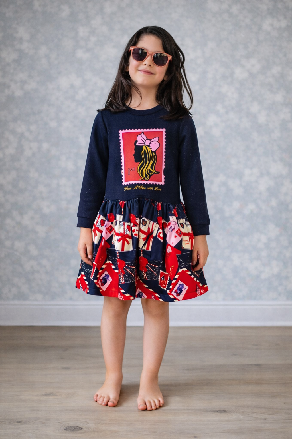 6-12 yaş kız çocuk lacivert desenli elbise, şık ve rahat tasarımıyla hem günlük kullanım hem de özel günler için ideal bir seçenektir. Üst kısmındaki modern baskı detayı ve desenli etek tasarımı enerjik bir stil sunar. Rahat kalıbı sayesinde gün boyu konfor sağlar, farklı ortamlarda kolayca tercih edilebilir.