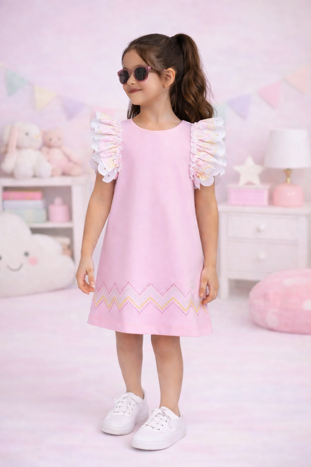 Doğum günü, özel günler, davetler ve günlük kombinler için ideal olan bu kız çocuk elbisesi, rahat kalıbı ve modern tasarımıyla hem şık hem de zarif bir stil sunar.