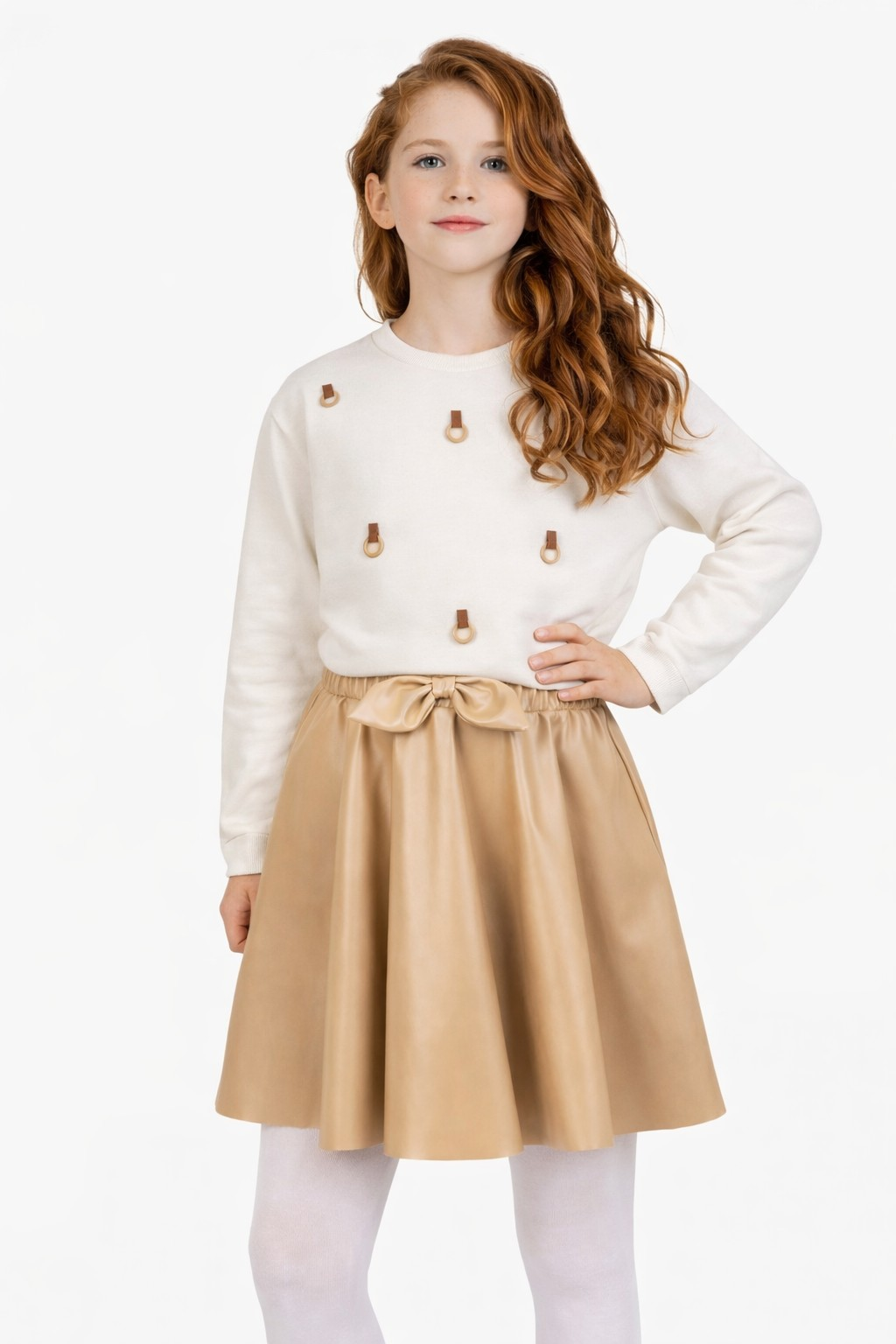 6-14 Yaş Kız Çocuk Camel Deri Etekli Takım