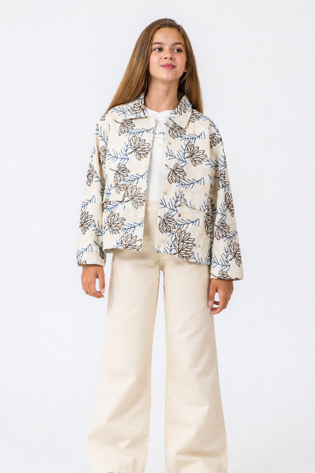 8-12 yaş kız çocukları için tasarlanan ceket ve pantolon takımı, modern ve rahat yapısıyla öne çıkar. Desenli ceket, tişört ve rahat kesim pantolondan oluşan bu kombin, şık ve uyumlu bir görünüm sunar. Günlük kullanımın yanı sıra doğum günü, bayram ve özel davetlerde tercih edilebilecek konforlu ve stil sahibi bir seçenektir.