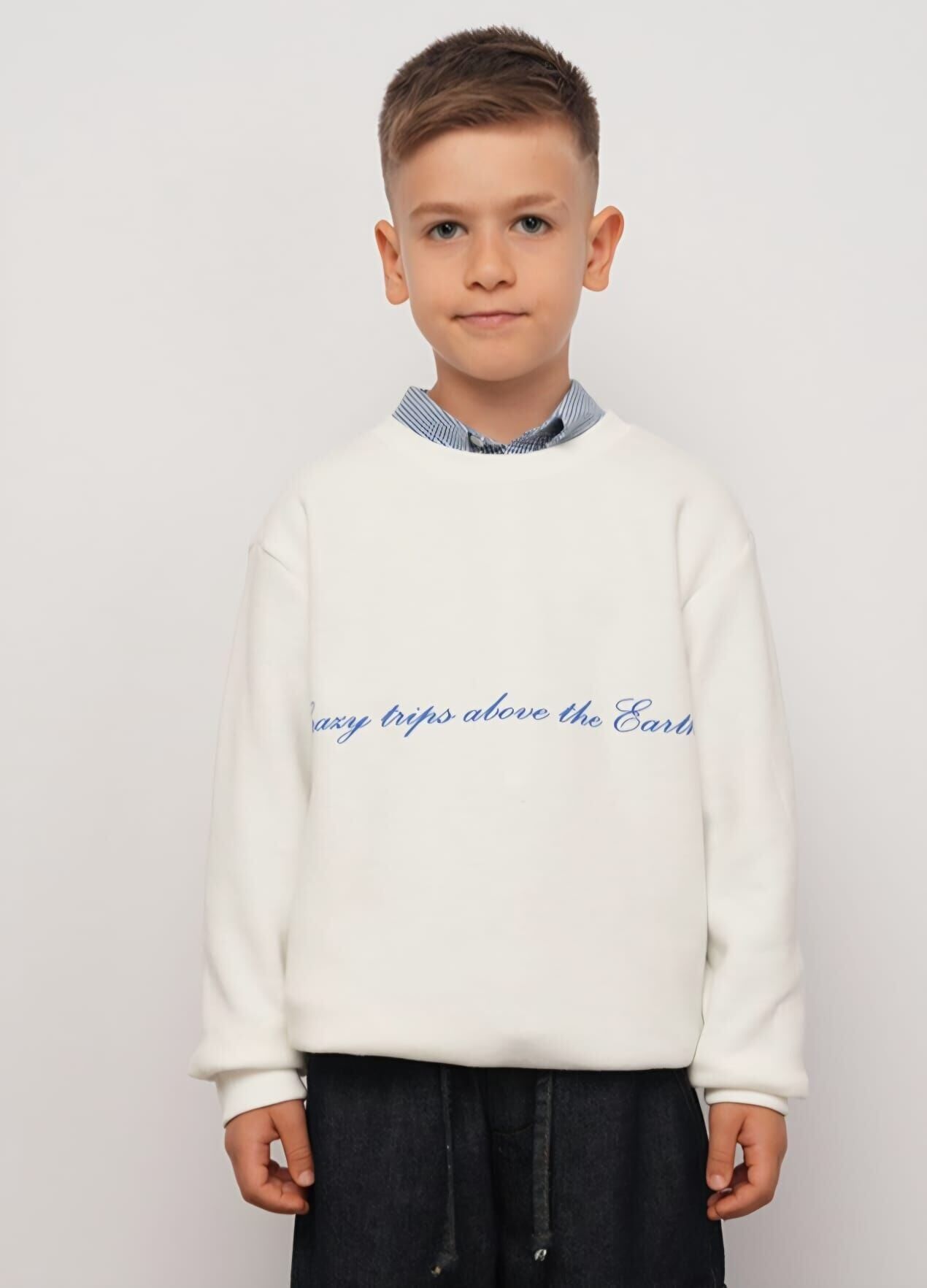8-14 yaş erkek çocuk ekru baskılı Selanik sweatshirt, şık ve modern tasarımıyla günlük kullanım için idealdir. Nefes alabilen Selanik kumaşı sayesinde ilkbahar ve sonbaharda konfor sunar. Rahat kesimi ile hareket özgürlüğü sağlar. Jean, pantolon veya eşofman altı ile kolayca kombinlenerek hem günlük hem şık bir stil oluşturur.