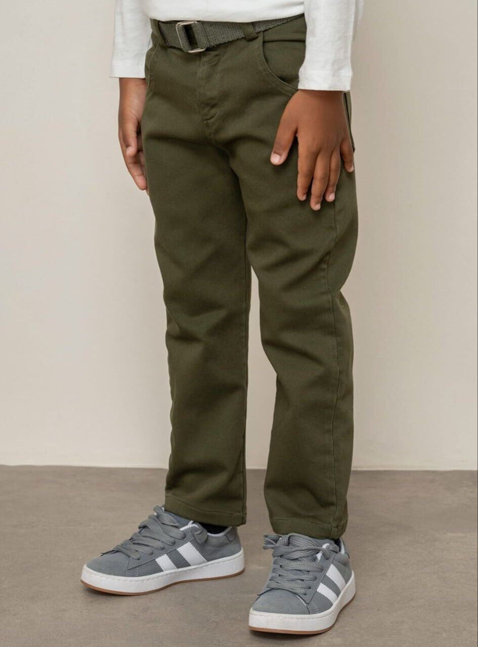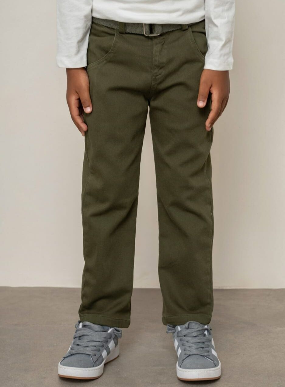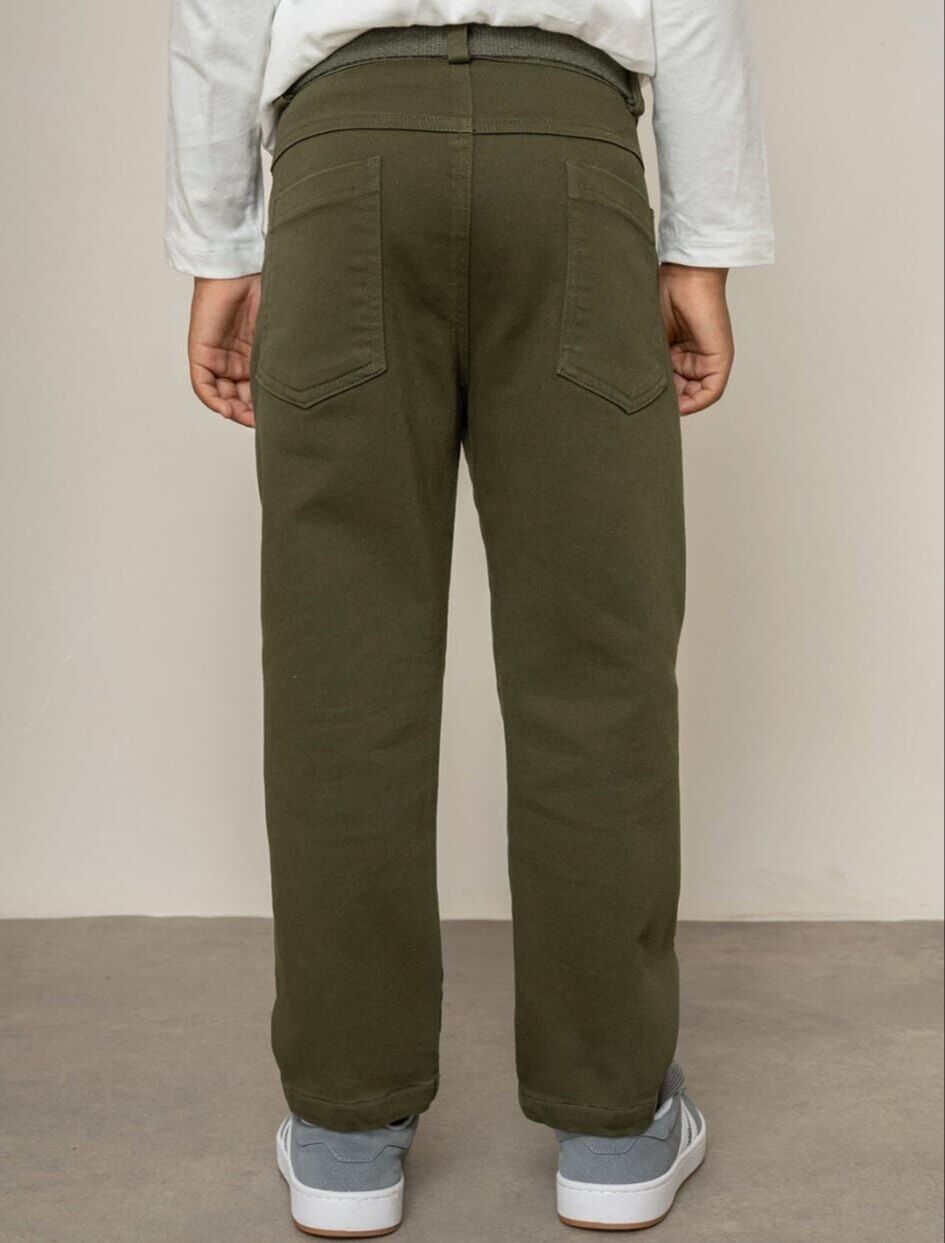 8-14 Yaş Erkek Çocuk Haki Gabardin Kemerli Şık Pantolon
