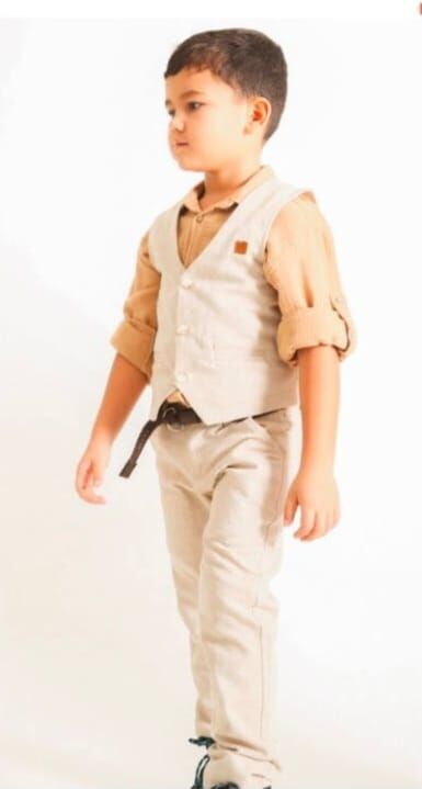 Gömlek yelek pantolon keten 3'lü takım