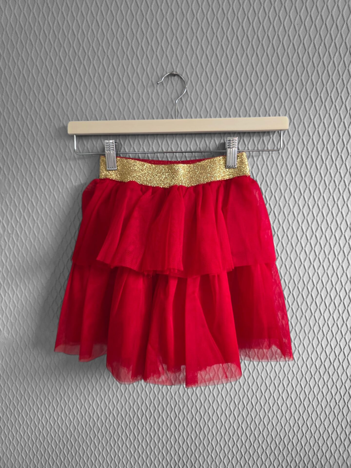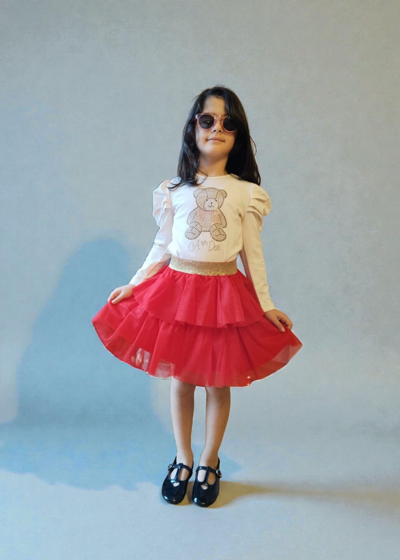Kırmızı Tül Katlı Etek & Işıltılı Bluz – Şık Kız Çocuk Takımı