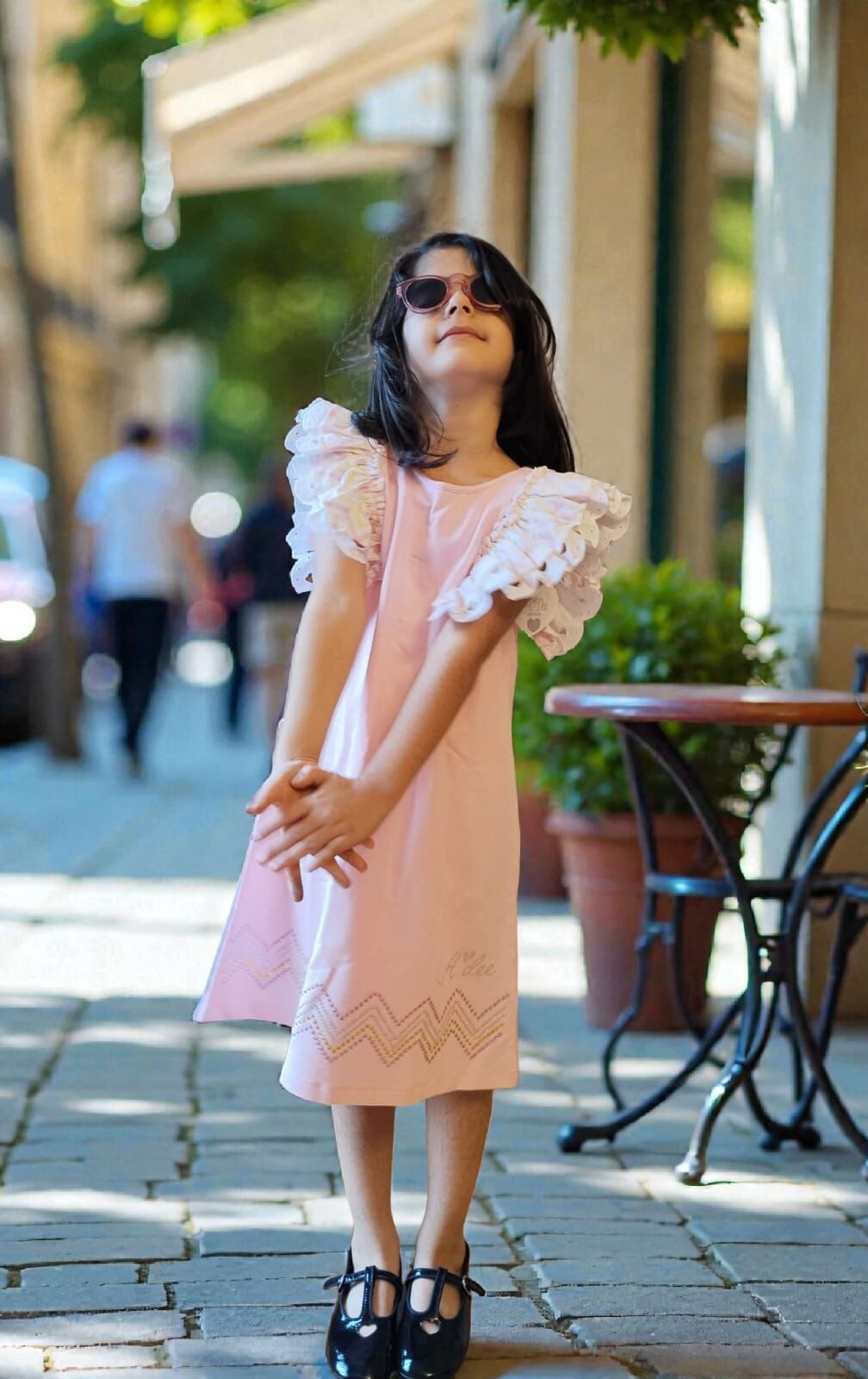 Kolları Fırfırlı & Sırt Detaylı Kız Çocuk Elbisesi – Bahar Esintili Zarafet