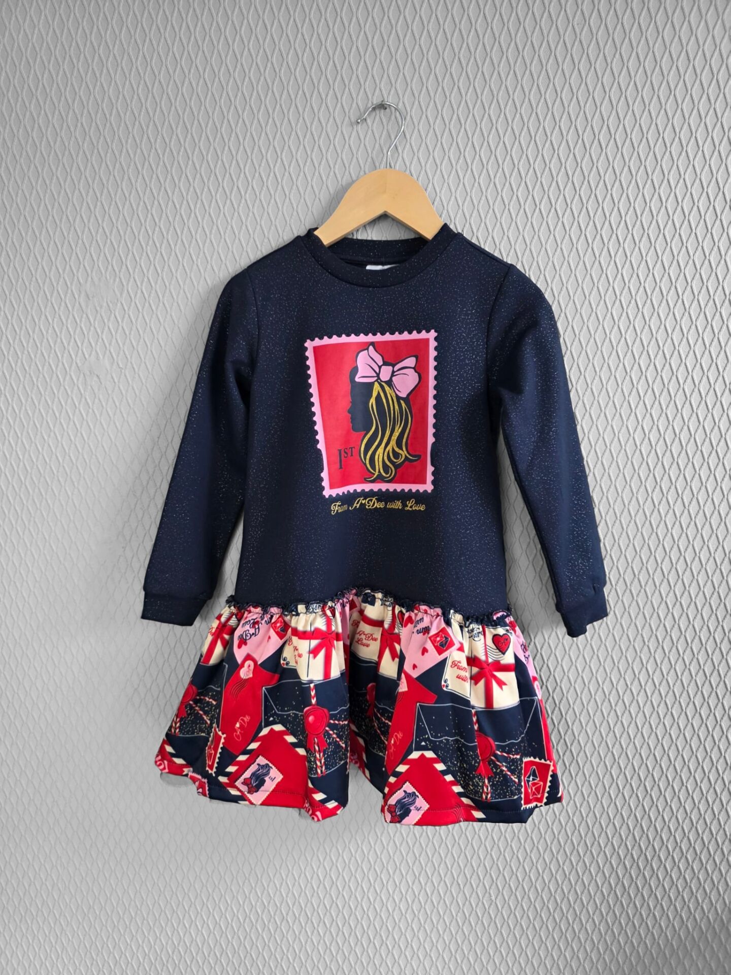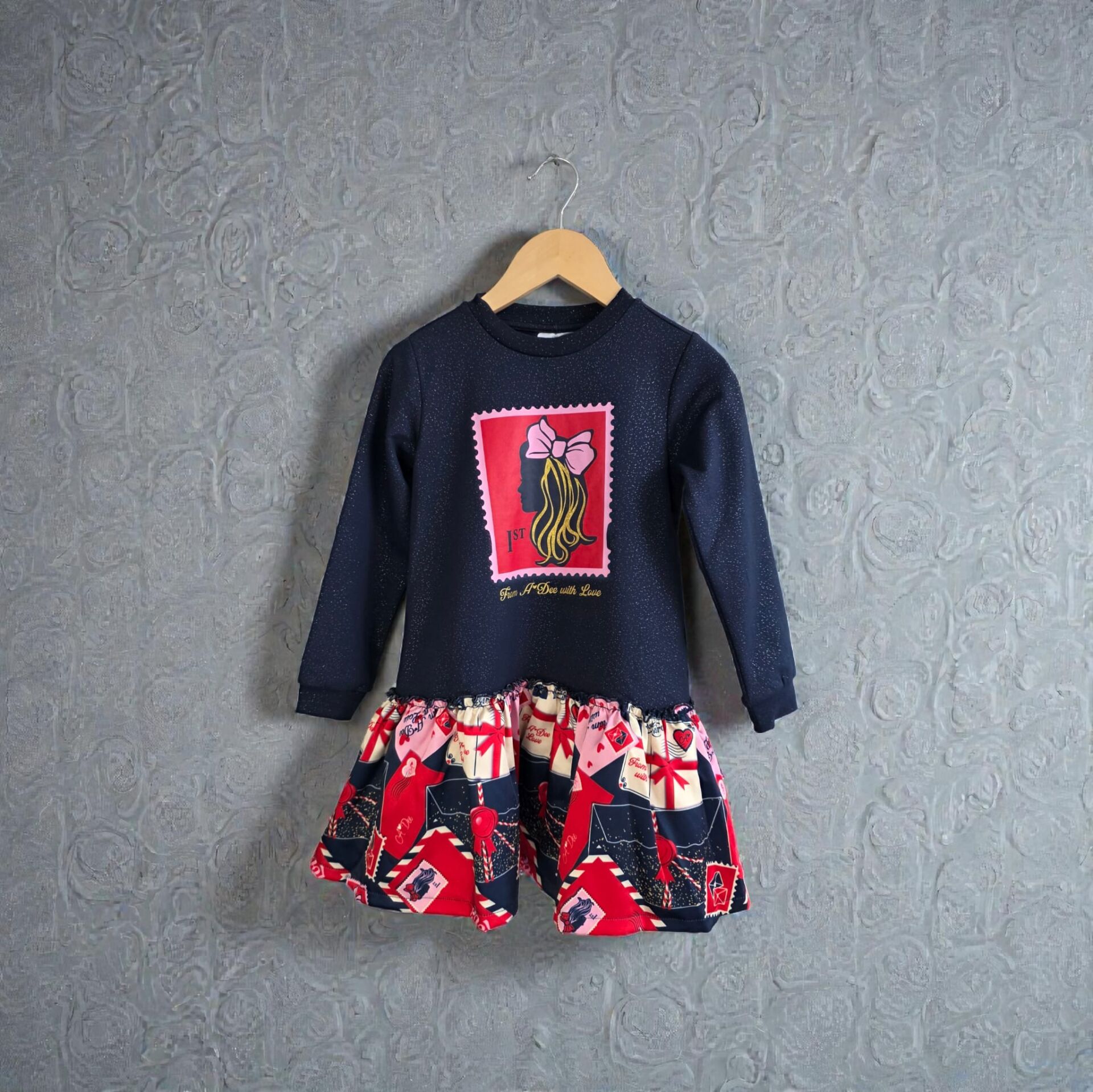 Lacivert Şık Tasarımlı Çocuk Elbisesi