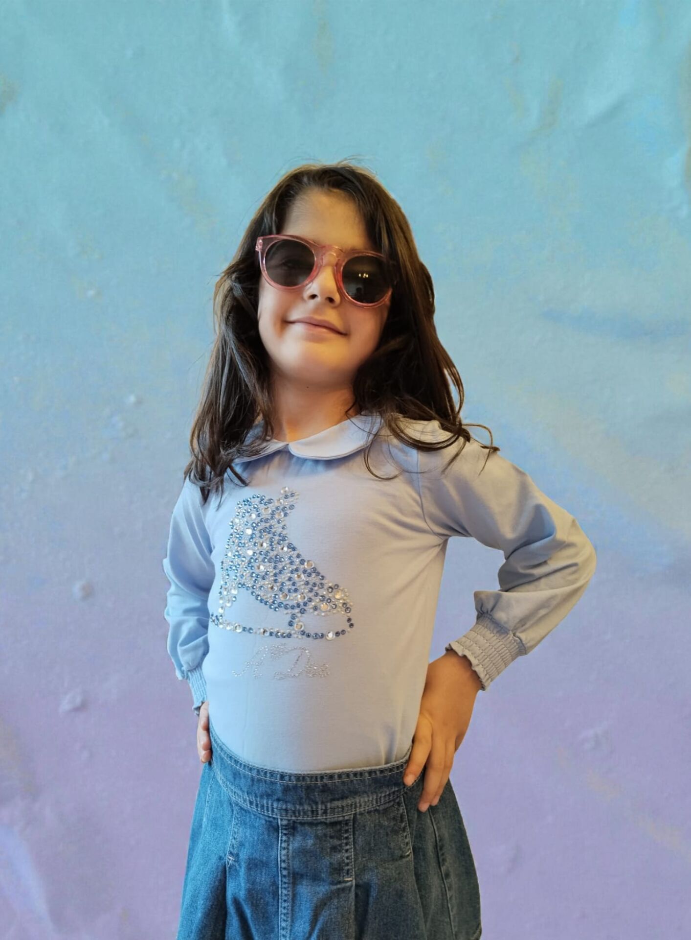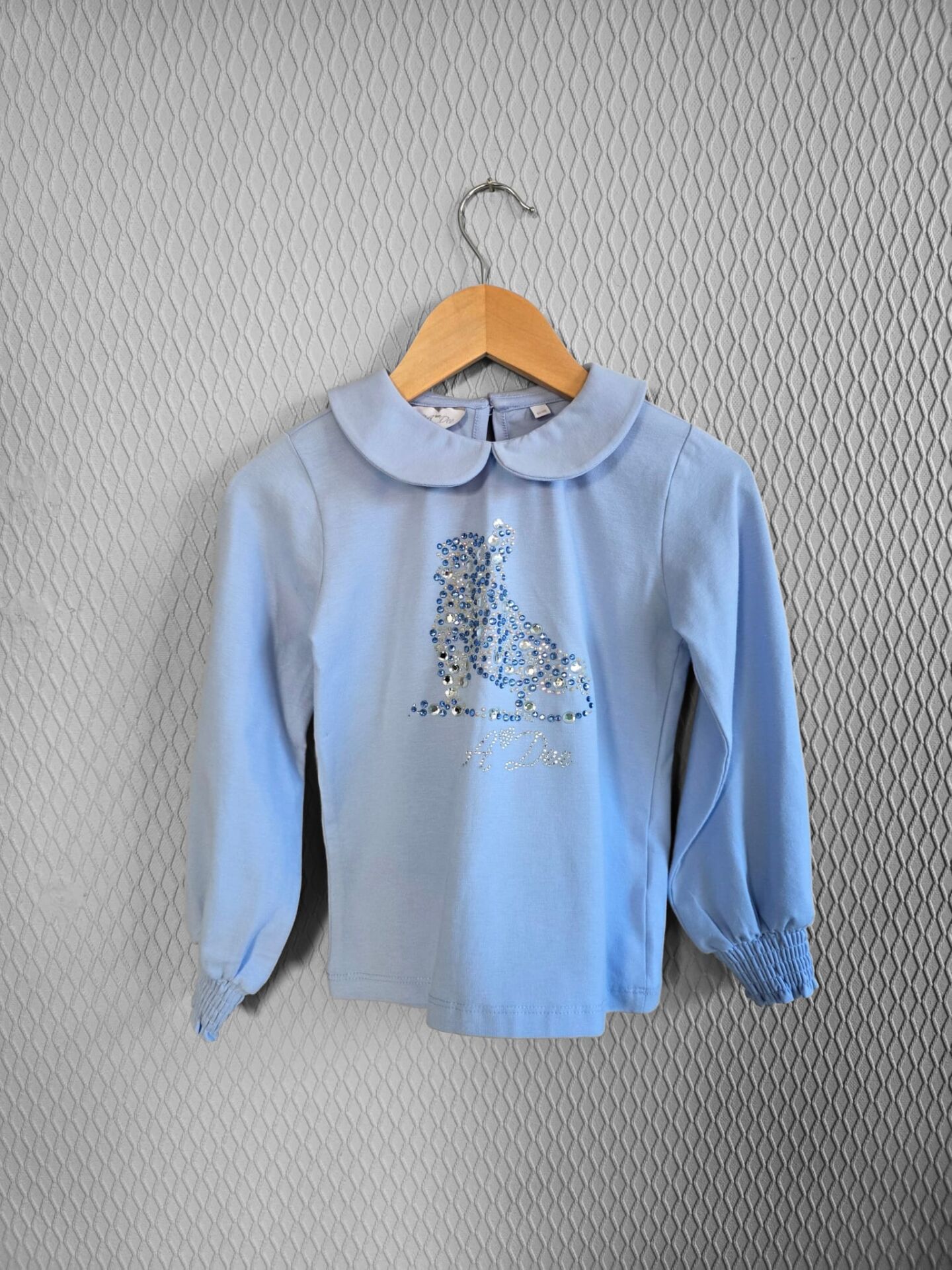 Mavi Işıltılı Paten İşlemeli Kız Çocuk Bluzu – Enerjik ve Sportif Şıklık